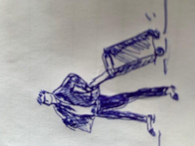 Cái dáng đi rất đặc biệt ấy, cái « vòng chân chờ đợi » khiến tôi vụt nhớ ra, và khuôn mặt V dần dần hiên ra, quen thuộc.